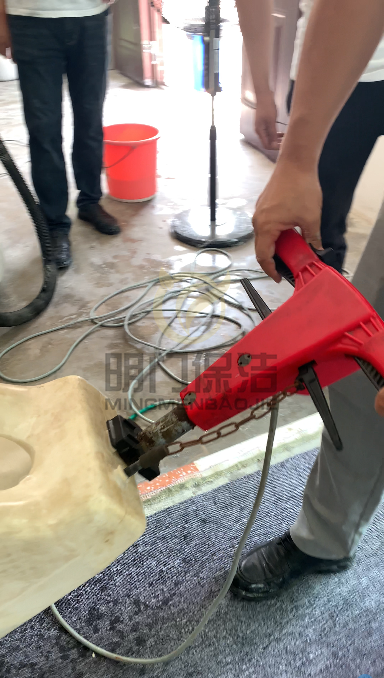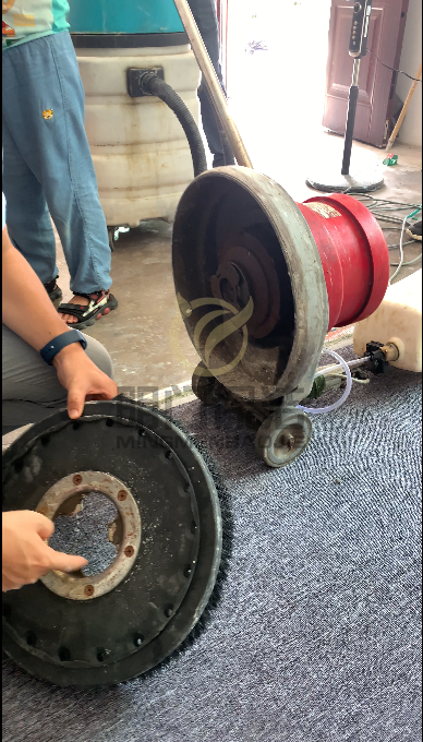 4、根据地毯污染的程度,按照实际情况稀释药剂,配合清洗机及刷盘清洗地毯并吸干。