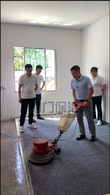 1、先将地毯上物品、家具(指可移动的座椅、绿植、茶几、衣架、电脑主机架等)挪放至暂不清洗的地方;2、将配兑好清洗香波的清洗用水倒入多功能地毯清洗单刷机水箱,从室内的较内端开始按顺序清洗;
