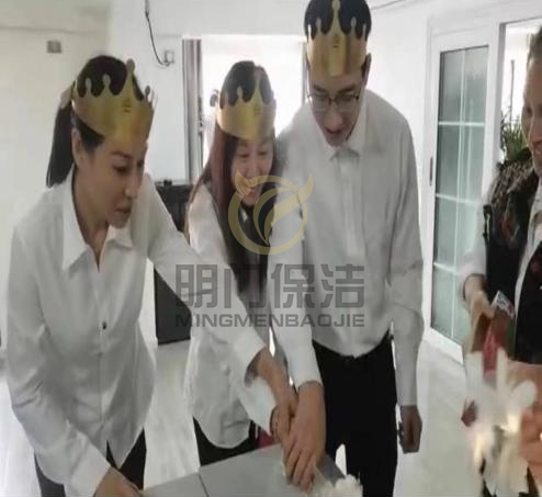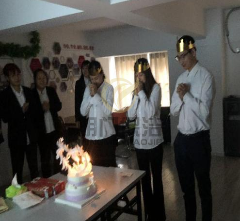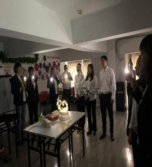 灯熄灭,蜡烛点明。伴随着欢快的生日快乐歌,三人默默许愿,大家一同许下生日愿望。再由公司领导发放生日礼品、以及贺卡,大家给寿星们送上最真诚祝福。寿星们一起切蛋糕,并分享美味可口的蛋糕。