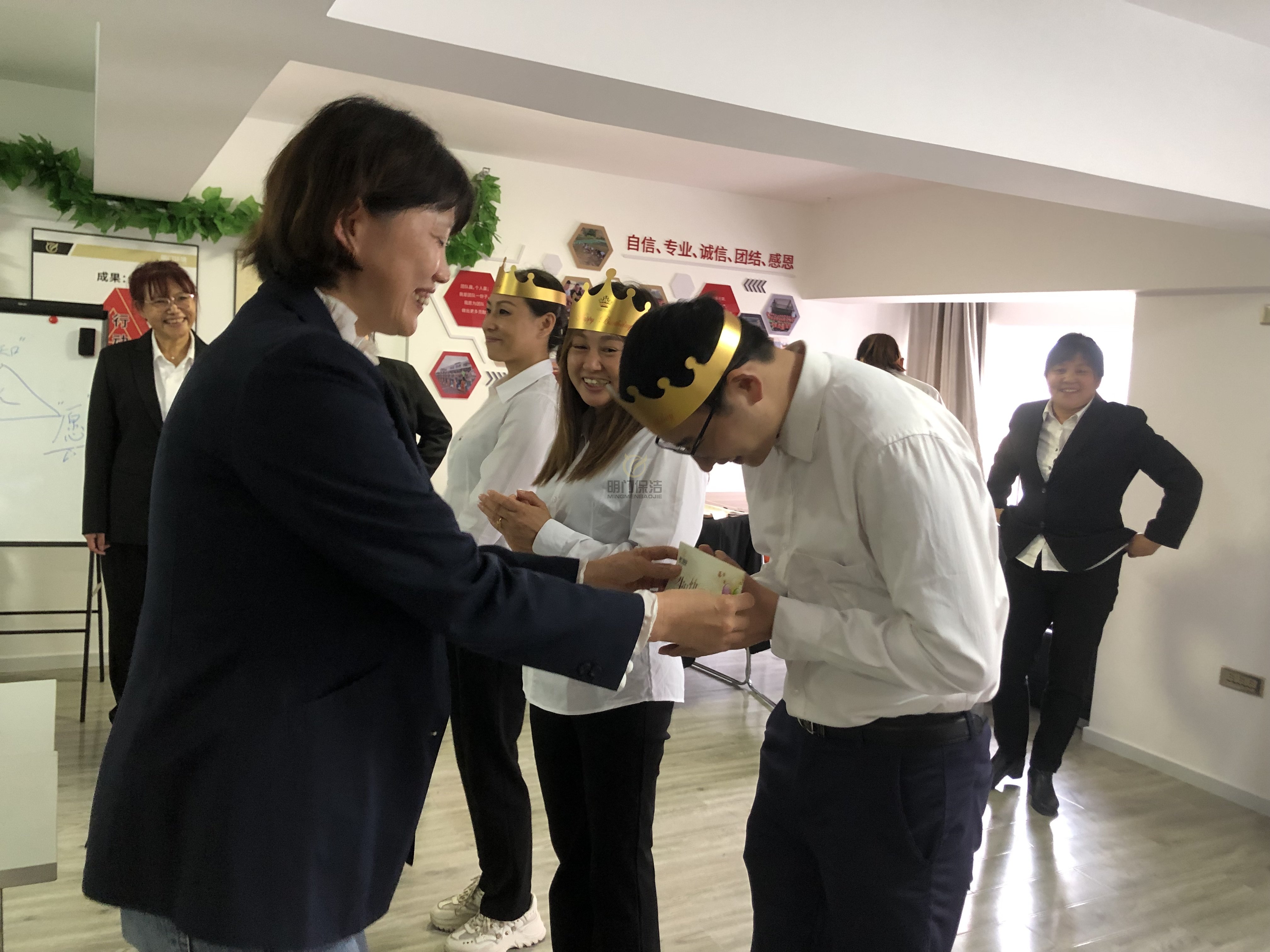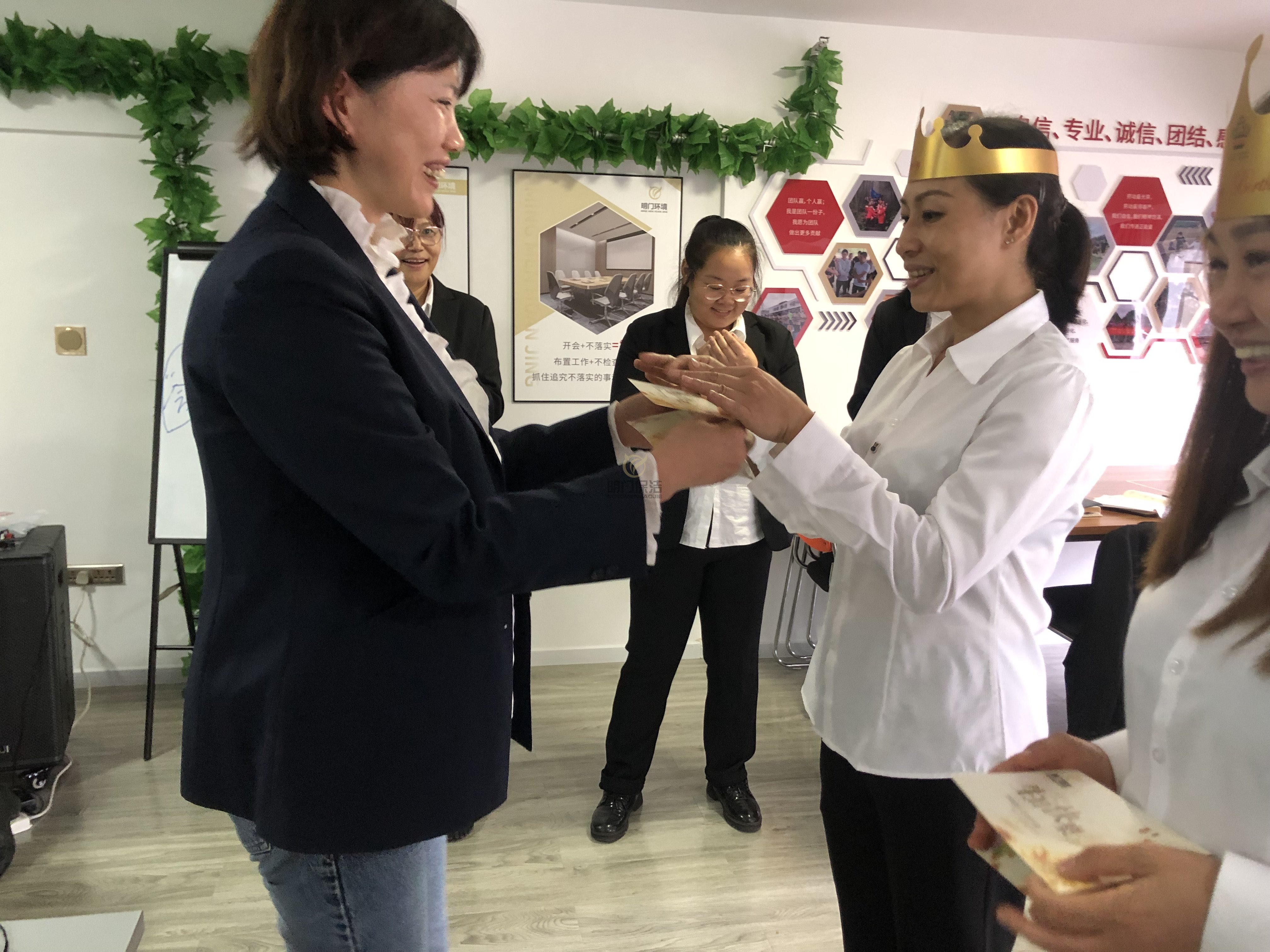 公司精心为8月、9月生日的家人们准备了《相伴九月,邂逅金秋》的生日主题会,生日会开始前,我们以她们参加游戏的方法,帮“寿星们”蒙着双眼,鉴于对家人之间的信任,从1楼被我们带到了2口楼的生日会现场。我们摇晃着手机、PPT上面放着我们对她们的祝福,当她们摘下眼罩的那个刻,喜悦、感动、喜悦的心情涌上心头。