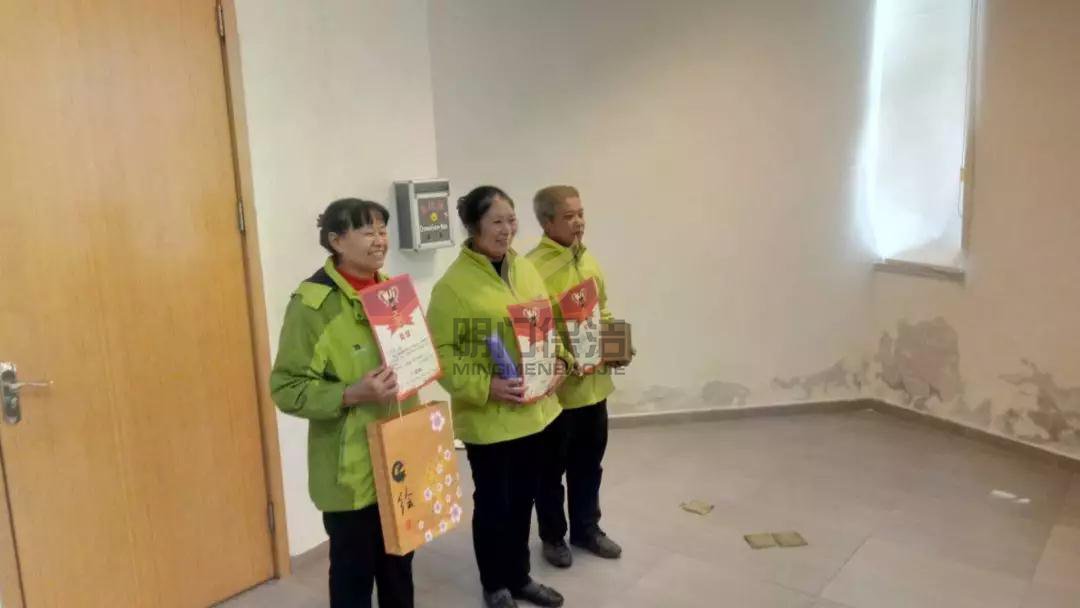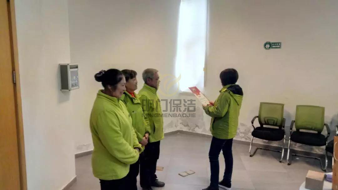 今天,我们明门保洁的李经理和负责心景酒店保洁场地的陈主管就和已经辛苦上班几天的保洁阿姨们一起进行品牌分颁奖大会。作为年后的第一场品牌分颁奖大会,大家期待满满。