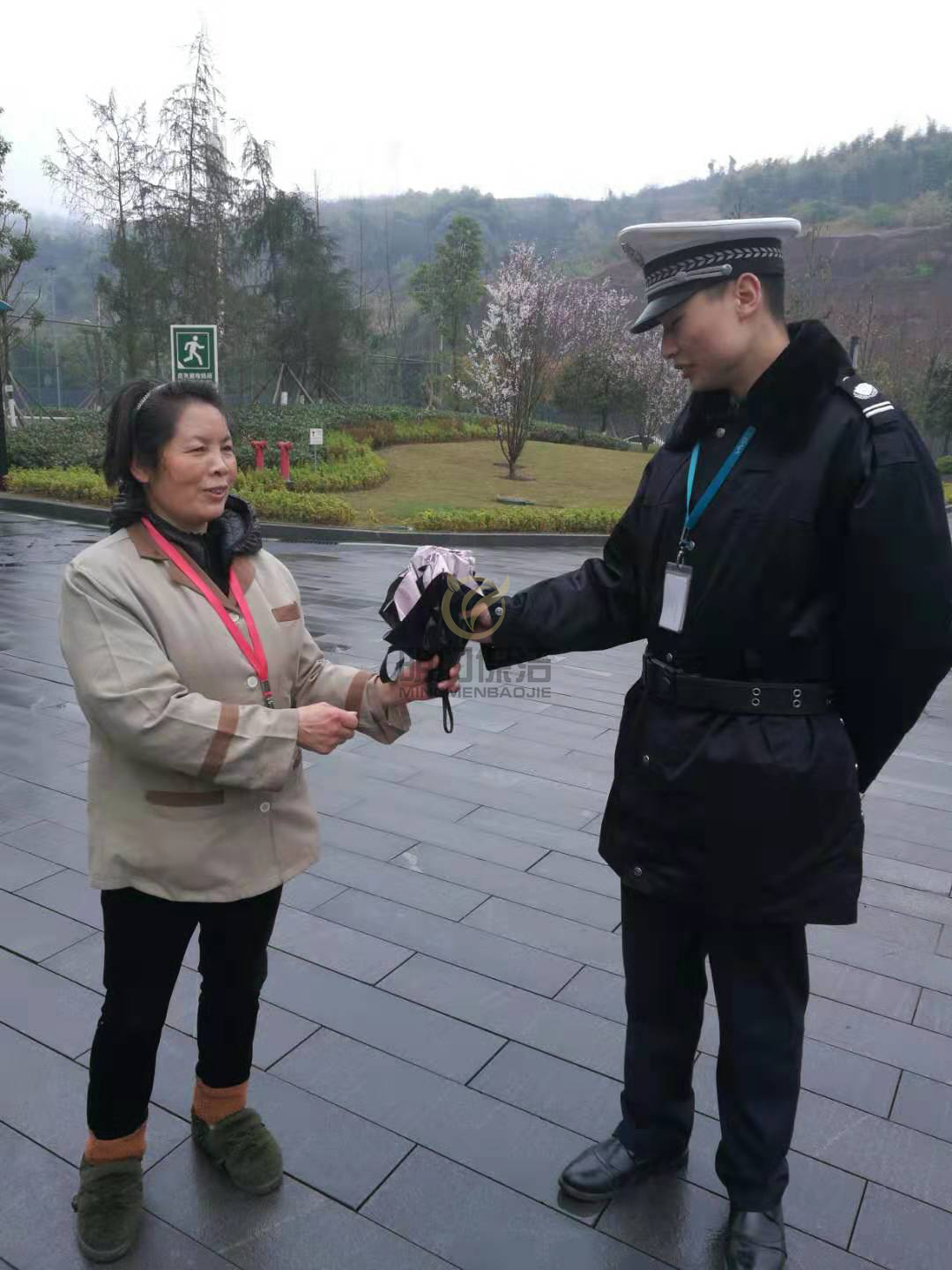 在2019年3月2号日常清洁过程中,发现了一把雨伞,周围并没有其他人。当日天气正是下雨天,我们明门保洁的周阿姨第一时间把雨伞交给当值的甲方保安,这种讲究诚信、拾金不昧的行为是对公司企业文化最大的宣传,值得所有人学习。