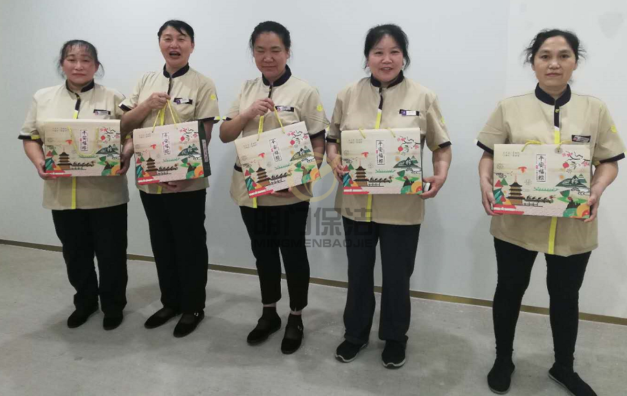 收到专属于自己的一份端午节粽子,保洁阿姨们十分开心。