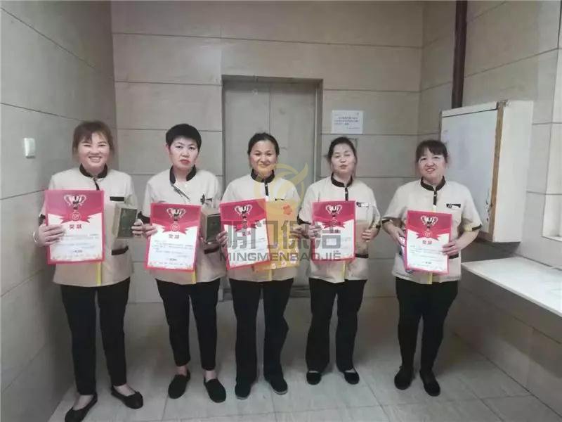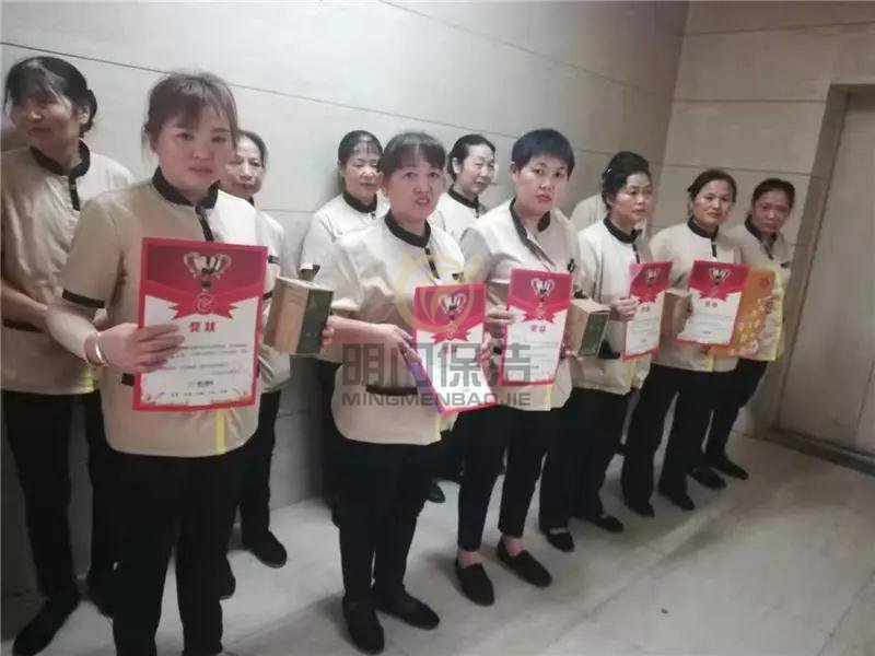 2019年9月,明门保洁管理人员来到了华美整形美容医院,为保洁阿姨们颁发2019年7-8月品牌分奖品,首先是在唐主管的带领下全体起立,一起诵读公司企业文化。