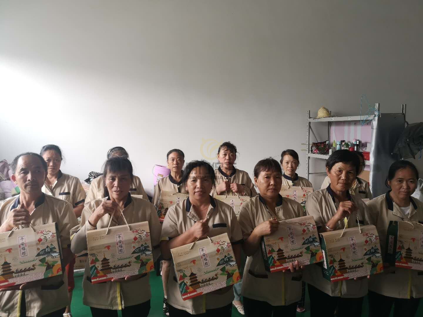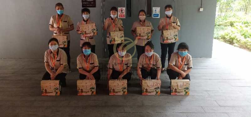 现场的阿姨们收到端午节的福利,大家都特别的高兴!还特意让现场的管理人员代他们向公司转达她们的感激之情。其实我们最应该感谢是在一线工作的你们!阿姨们辛苦了,祝大家节日快乐!