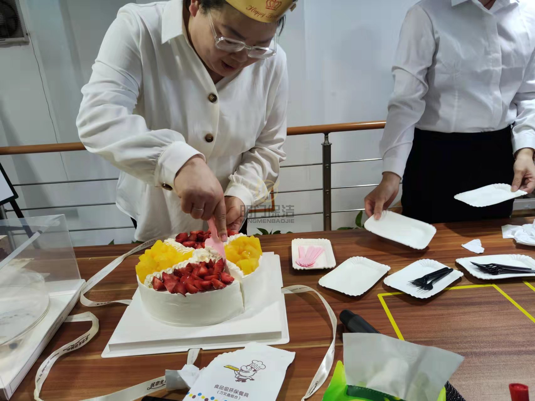 最后就是大合影啦,寿星站C位,最后大家在欢声笑语中一起品尝蛋糕与水果,本次生日会不仅让员工感受到了大家庭的温暖,更提高了队伍的凝聚力,再次祝我们的寿星生日快乐,越来越年轻,越来越貌美!